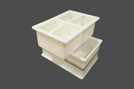 - For rectangular or large sized moulds, we have at our disposal stainless reinforcements that give the walls of the mould greater mechanical solidity. So long as the mould allows it, we include the reinforcement as a single piece that is cut using a laser. This type of reinforcement prevents dirt, provides functional durability and easier handling for the operator.